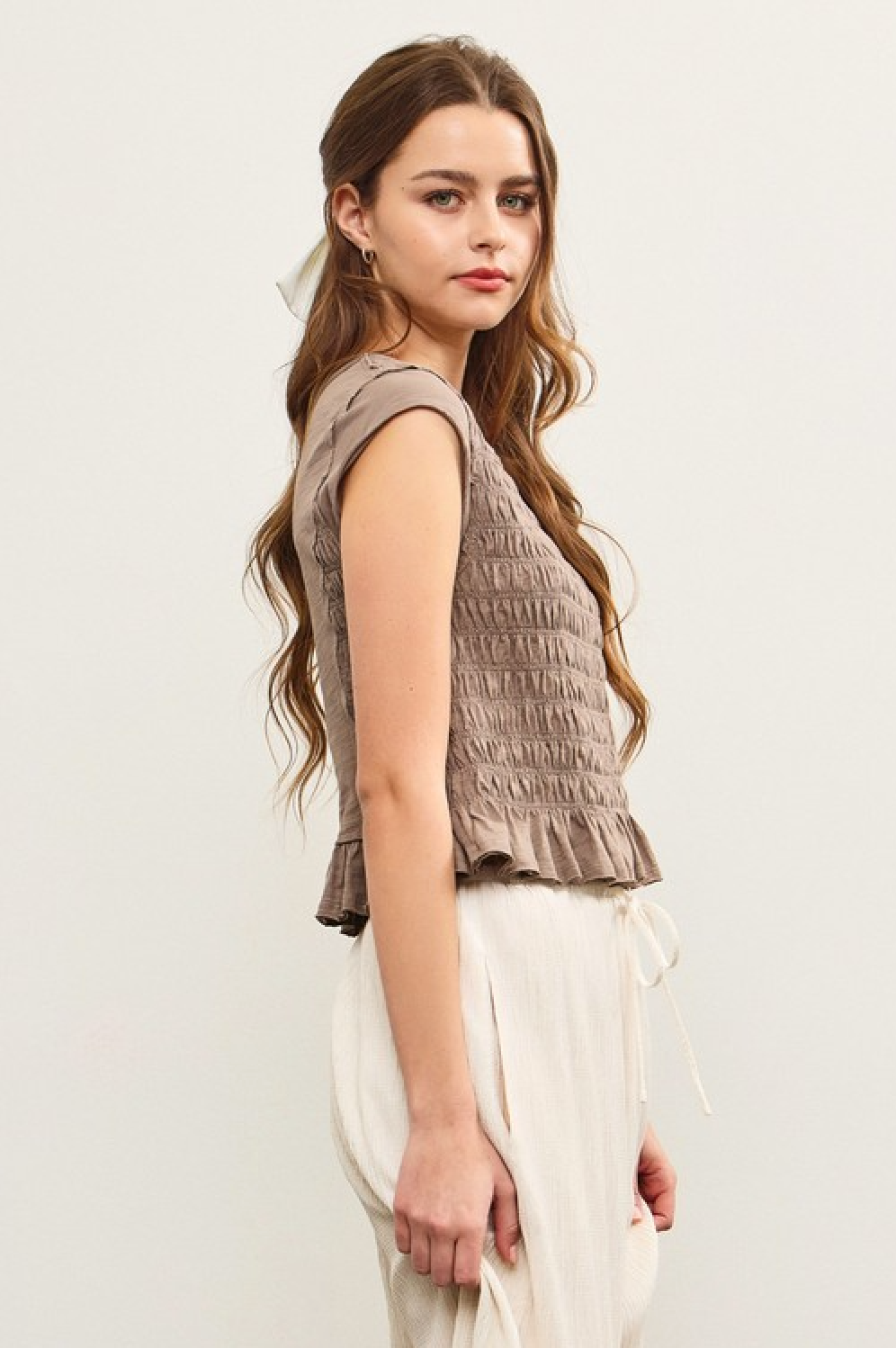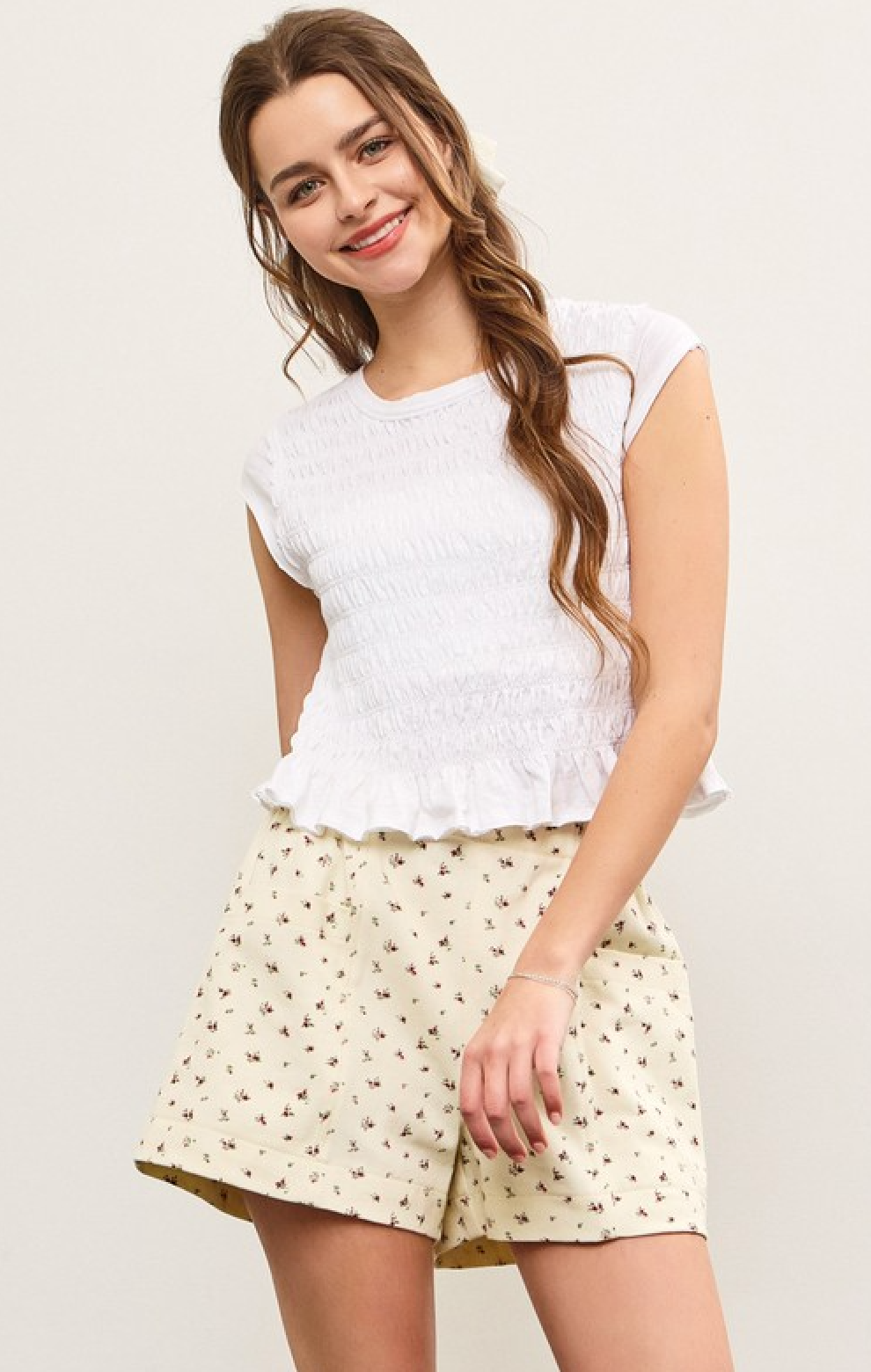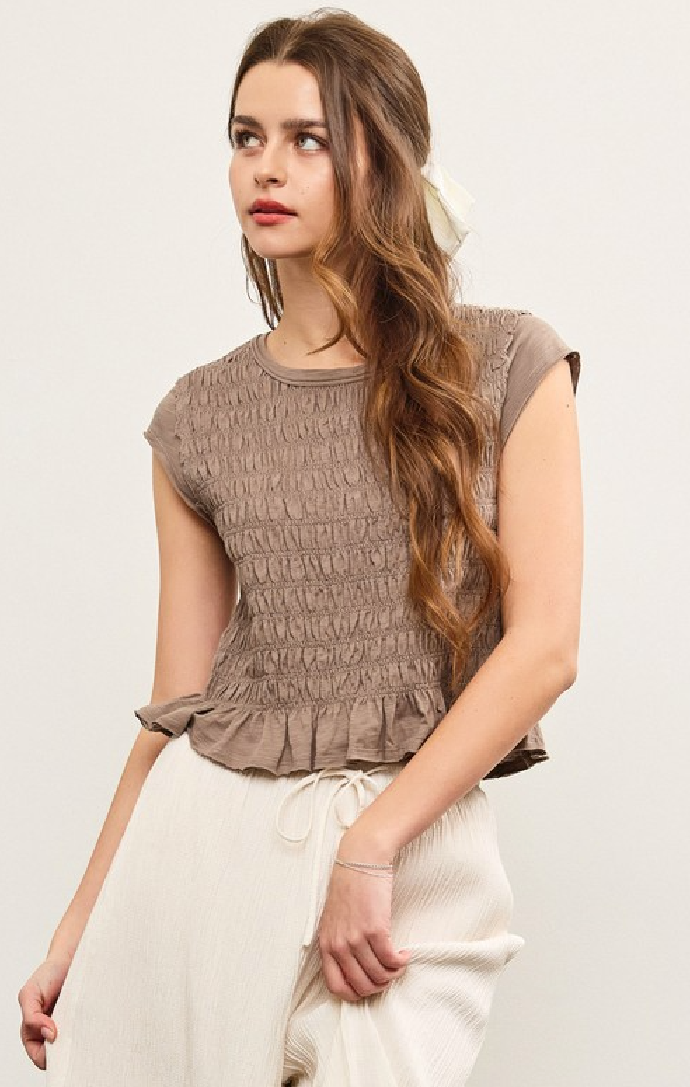 This Babydoll Top combines playful style with a flattering, cropped fit. Featuring scrunched detailing that adds texture and shape, this top is perfect for creating a feminine and relaxed silhouette. Its versatile design makes it ideal for casual outings or layering under jackets and cardigans for a chic, layered look. Whether you're pairing it with jeans or skirts, this babydoll top brings a touch of effortless charm to any outfit.