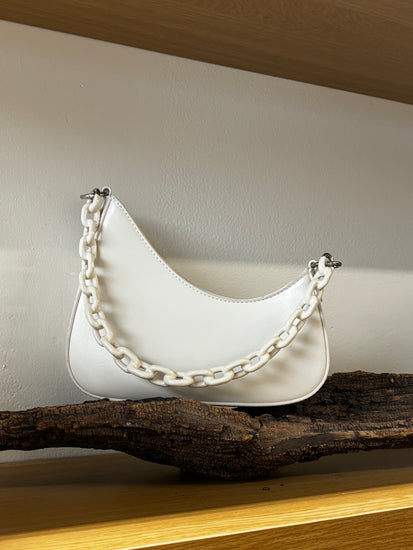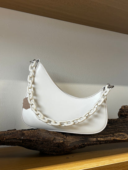 Minimalist, edgy, and endlessly versatile—our chain strap purse is the ultimate statement in quiet luxury. Crafted in a creamy off-white faux leather with a structured silhouette and bold resin chain handle, it balances elegance with just the right amount of edge. Whether you're heading to brunch or dressing up denim, this bag makes styling effortless.