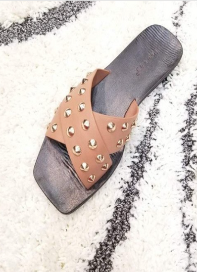X crossing an easy silhouette with rose gold SPIKES for a more edgy look. Make any outfit look stylish without trying.