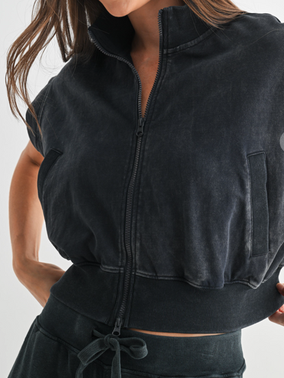 Level up your layering with the Grey Mist Zippie — a sleek, sleeveless cropped jacket designed for effortless style. Its misty grey hue brings a cool, modern vibe, while the front zipper adds that perfect sporty-chic touch.