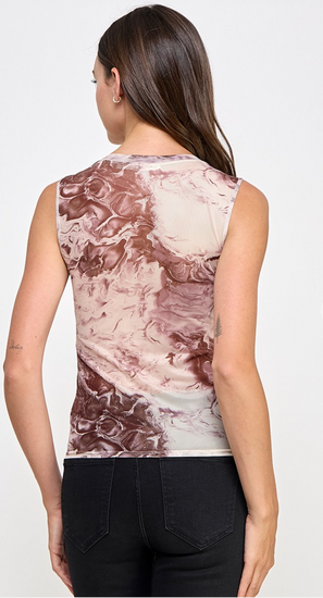 Turn heads in the Marble Mesh Tank, where edgy meets elegance. Designed with a sheer, lightweight mesh fabric and a mesmerizing marble print, this top is the perfect statement piece for layering or rocking on its own. Its figure-hugging fit adds a touch of sultry appeal, while the breathable fabric keeps it effortlessly comfortable. Pair it with sleek trousers for a night-out vibe or layer it over a bralette for a bold, fashion-forward look