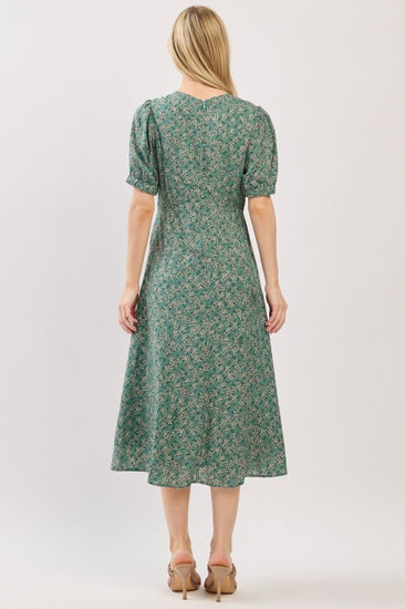 A breath of fresh air, the Meadow Bloom Dress brings effortless romance to your wardrobe. Its soft green hue is adorned with delicate florals, evoking the charm of sunlit gardens and blooming fields. With a silhouette that flatters and flows, it’s a piece made for lingering afternoons, garden parties, and every moment in between.