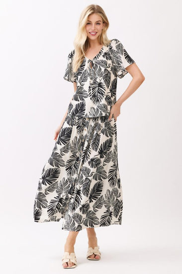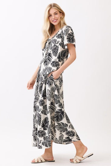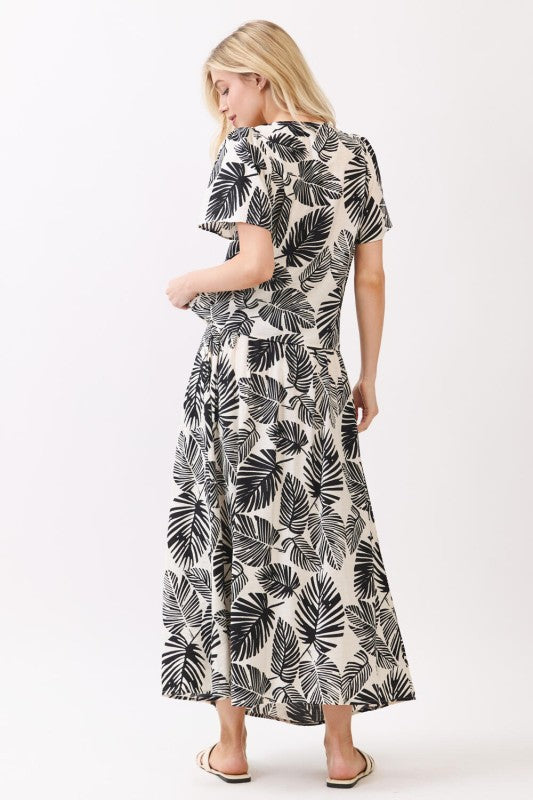 Timeless yet striking, the Midnight Leaf Dress captures effortless elegance in monochrome. A cascade of black botanical motifs graces a crisp white canvas, creating a look that’s equal parts modern and romantic. With a silhouette designed for movement and versatility, it transitions seamlessly from daytime charm to evening sophistication.