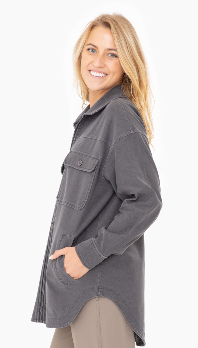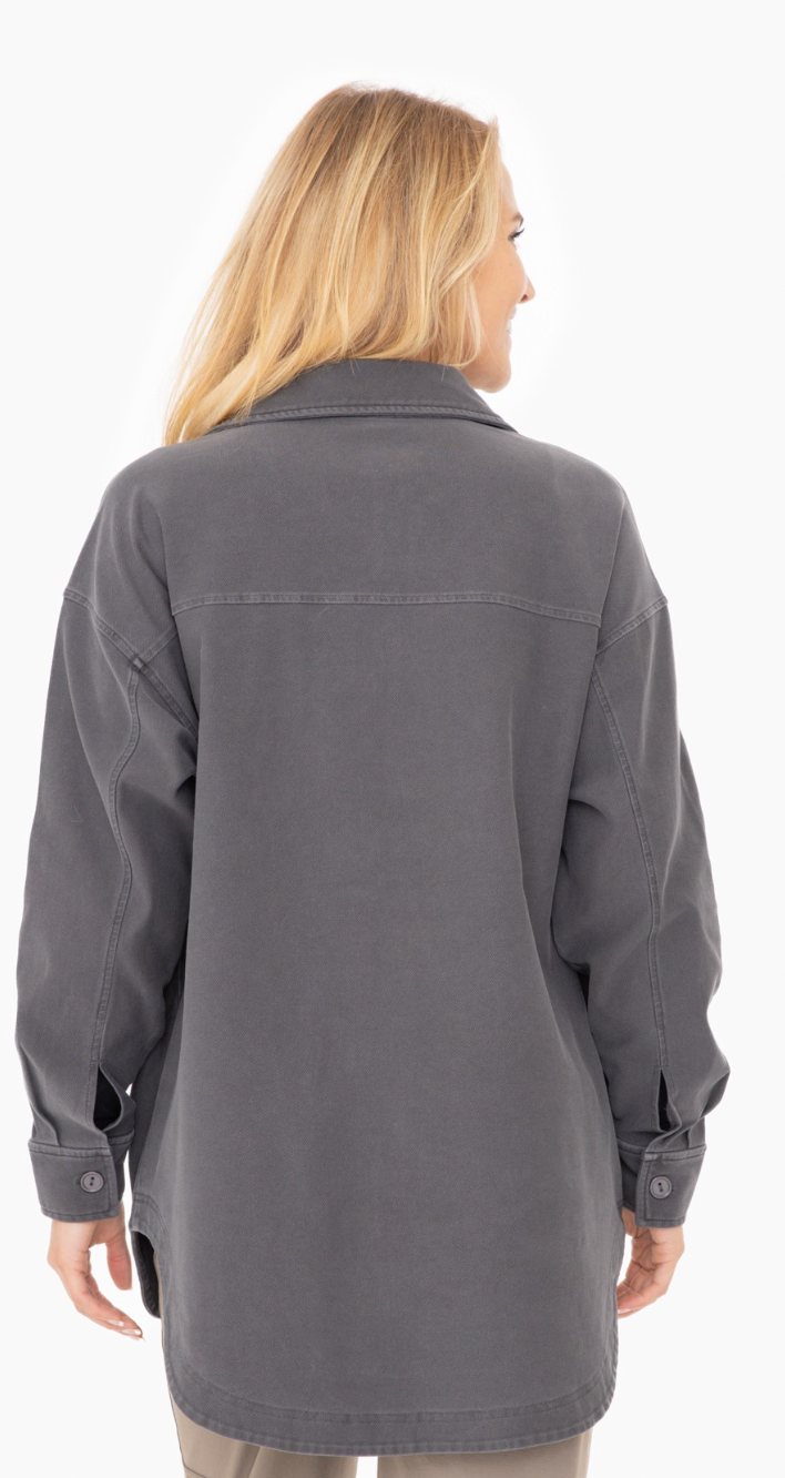 Combine the rugged appeal of workwear with modern fashion sensibilities! Our oversized twill shacket features a full front zip, oversized cargo pockets, and welt hand pockets.