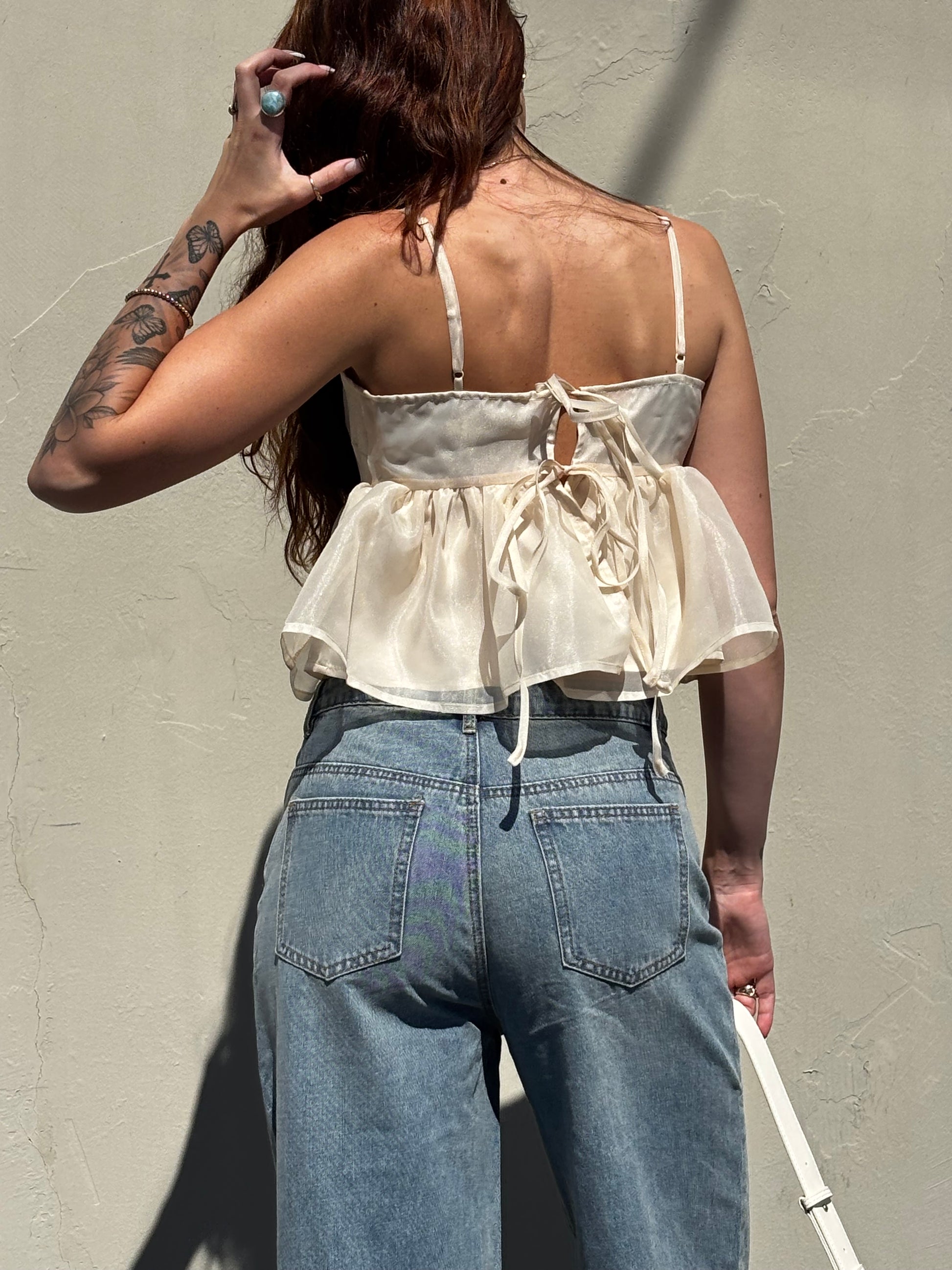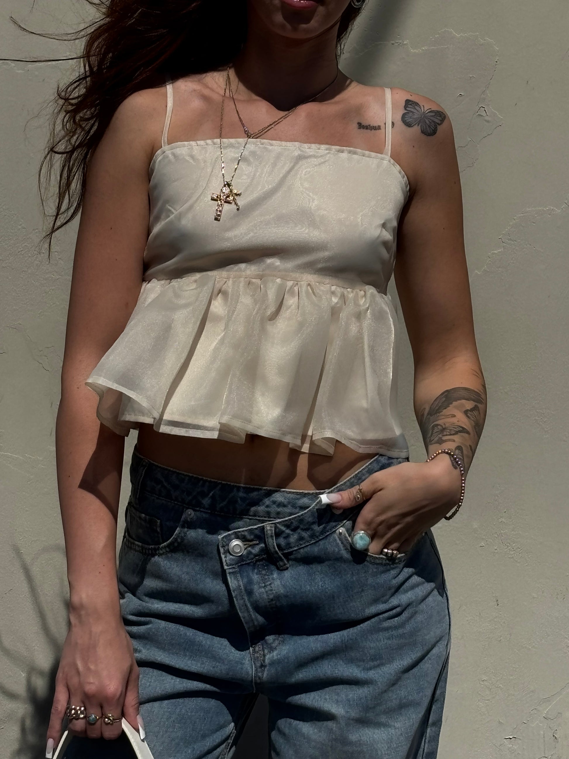 Sip into summer with the Champagne Crop—an effortlessly flirty piece that brings the glow. This dreamy satin-finish top features a soft shimmer, delicate spaghetti straps, and a romantic peplum hem that pairs perfectly with denim or layered under a blazer. Lightweight and airy, it’s made for warm days, golden hour dates, and everything in between.
