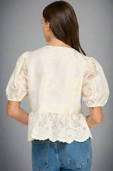 Elevate your look with the White Lotus Embellished Top, a cropped style adorned with delicate floral embellishments that catch the light with every movement. Puffy sleeves and a flattering silhouette add a playful, romantic touch, making it perfect for brunches, garden parties, or pairing with high-waisted skirts and jeans for effortless elegance.