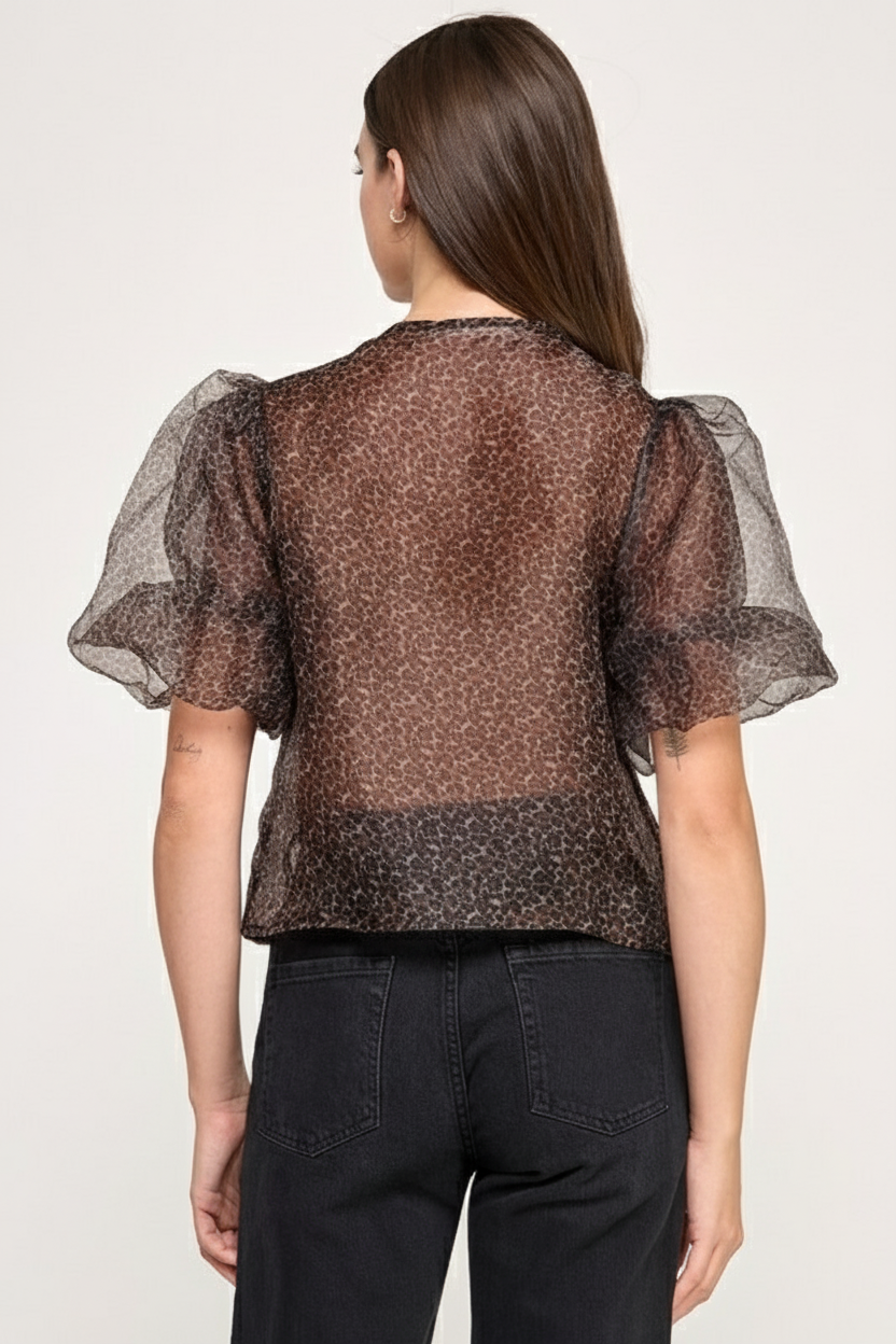 Unleash your wild side in the Wild Cheetah Blouse. This sheer, lightweight top features a bold cheetah print that adds the perfect touch of fierce femininity to any look. Its flowy silhouette drapes effortlessly, making it perfect for layering over a bralette or cami for a night out, or styling with denim for that effortlessly cool vibe.